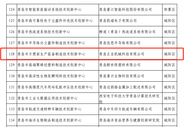 青島正亞機(jī)械入選青島市2021年度技術(shù)創(chuàng)新中心