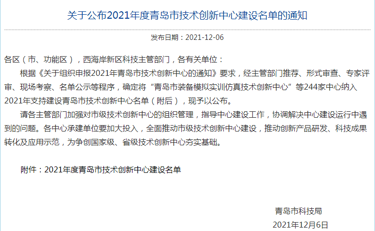 青島市技術(shù)創(chuàng)新中心建設(shè)名單